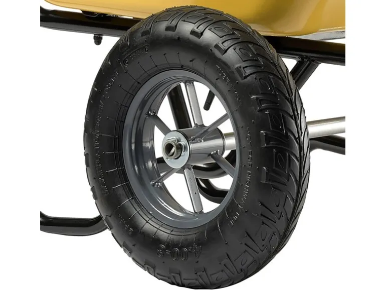 Diese ergonomische Schubkarre mit großer Ladekapazität eignet sich für Arbeiten auf Baustellen, in unebenem Gelände oder in Werkstätten.