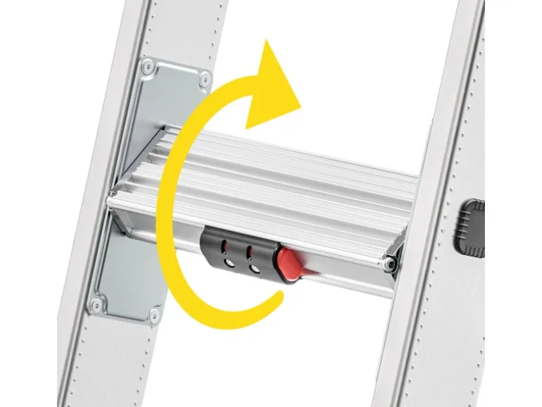 Die Leiter ist vielseitig verwendbar als Anlege- und Bockleiter, hat längs- und querprofilierte Sprossen, rutschfeste Flächenauflage-Steckfüße sowie einen standsicheren Querbalken mit großflächigen Tatzenfüßen. Das dritte Leiternteil ist nicht abnehmbar. Die Sprossenleiter ist bis 150 kg belastbar.