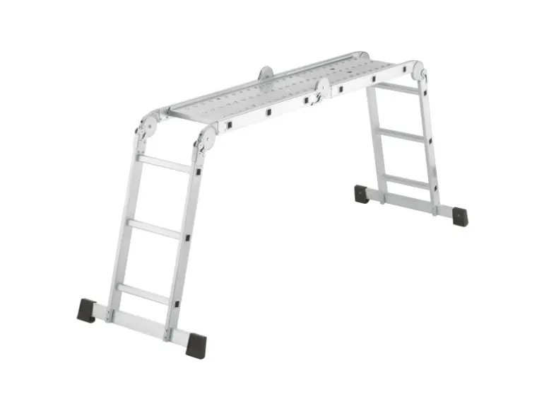 Sie ist Arbeitsbühne, Anlege- und Stehleiter in einem und besitzt eine separate, rutschfest geriffelte Metall-Plattform (143 cm x 30 cm) für die bequeme und sichere Nutzung.
