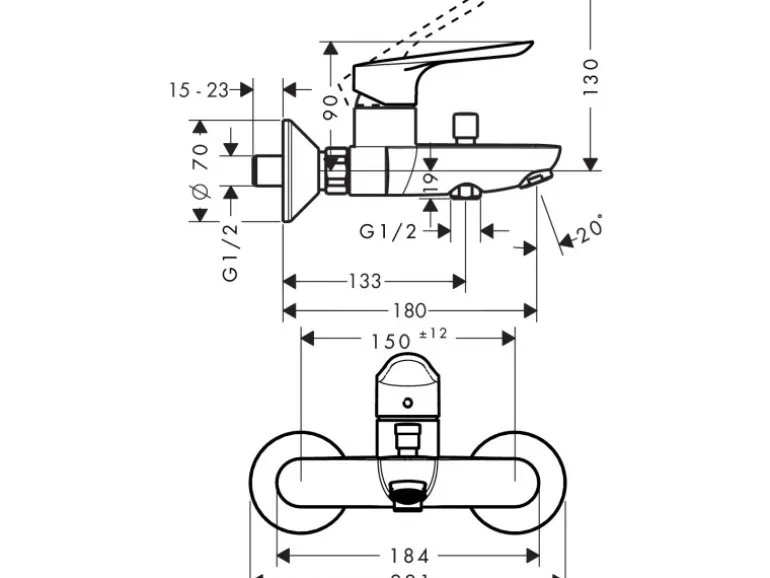 – Durchflussmenge für Wanneneinlauf bei 3 bar: 20 l/min