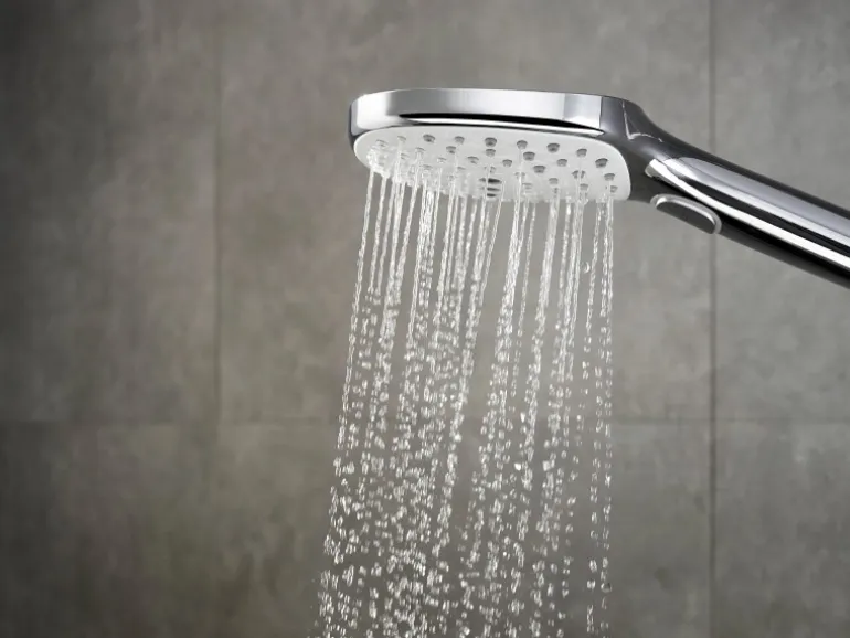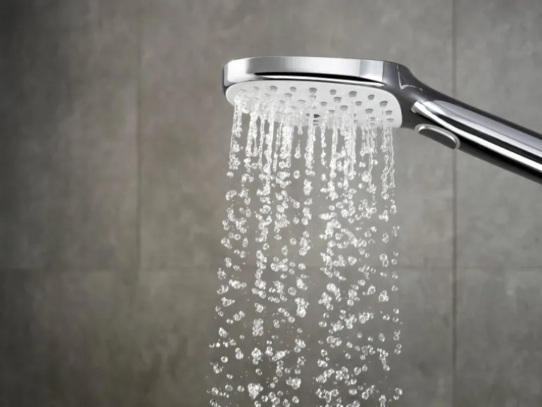 Durch Hansgrohe QuickClean, die Antikalk-Funktion für Duschköpfe und Armaturen entfernen Sie Kalkablagerungen auf den Silikondüsen schnell und einfach per Hand.