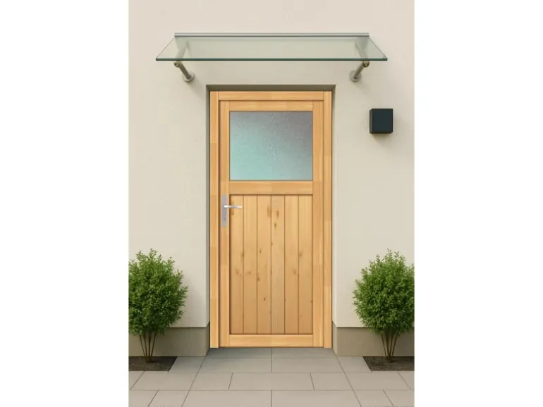 Bitte beachten Sie, dass bei einer Montage der Holz-Nebeneingangstür in unbeheizten Räumen, wie z. B. an Carports, Gartenhäusern oder ähnlichem, aufgrund der natürlichen Holzeigenschaften (Quellen und Schwinden) ein Verzug an der Tür auftreten kann. Dies stellt keinen Reklamationsgrund dar.
