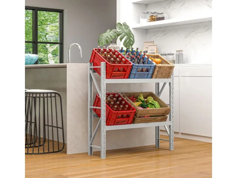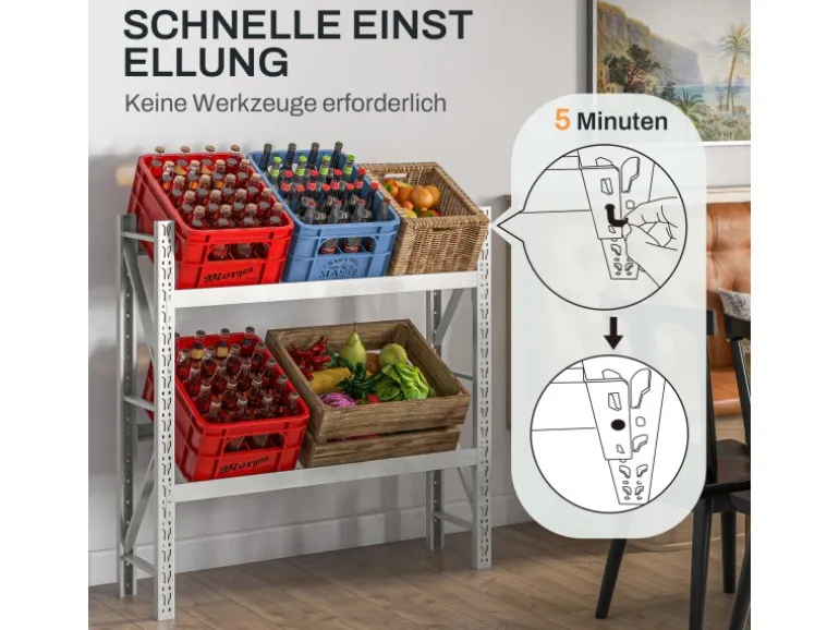 Entdecken Sie die einfache Art der Organisation mit dem HOMCOM Regal für Getränkekisten! Dieser zweistufige Kistenständer bietet Platz für bis zu 6 Getränkekisten und sorgt dafür, dass Ihre Getränke stets griffbereit sind, ganz ohne Bücken. Doch das ist nicht alles: Versetzen Sie das Regal, um Obst, Gemüse oder sogar Wäschekörbe zu verstauen. Eine clevere und vielseitige Lösung, um Ihren Raum sauber und ordentlich zu halten!