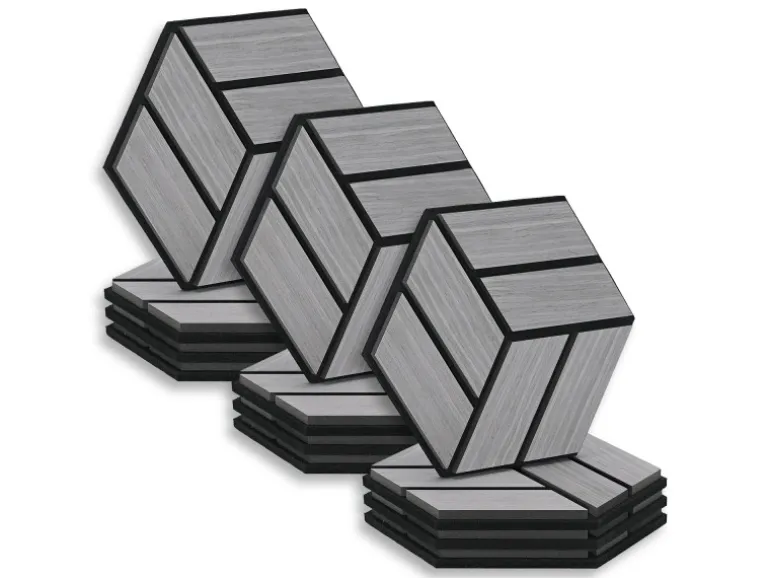 12 moderne Deko Paneele in stilvoller Holzwabenform (decken ca. 0,936 m² Fläche ab), grau