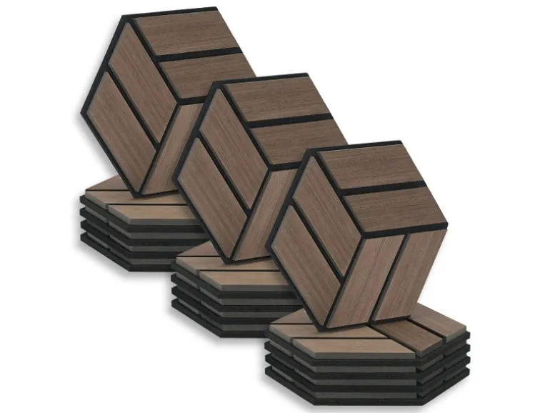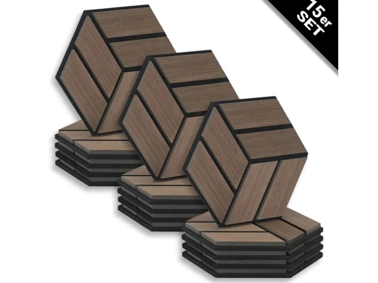 15 Akustikpaneele je 30x26x2 cm in moderner Hexagonform im Walnuss Ton