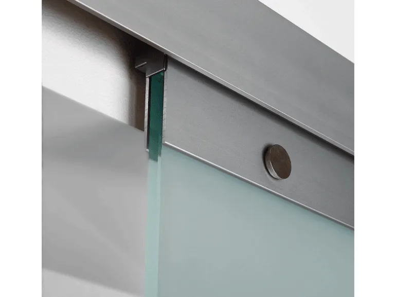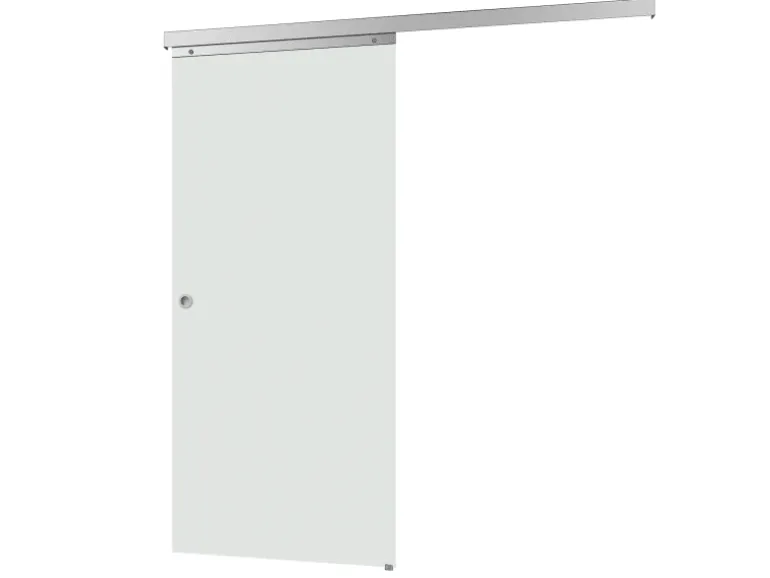 Die Glaschiebetür besteht aus 8 mm starkem Einscheibensicherheitsglas (ESG) mit vollflächig satiniertem Dekor. Die Laufschiene ist aus stabilem Aluminium gefertigt und somit rostfrei.