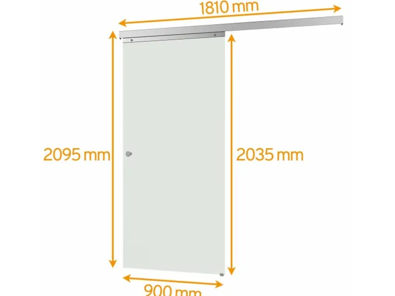 Diese Glasschiebetür eignet sich für Einbausituationen mit einer Öffnungsbreite von max. 860mm und einer Öffnungshöhe von max. 2000mm. Die Gesamthöhe bzw. Oberkante der Schiene ist 2095mm. Durch das mitgelieferte Wanddistanzprofil kann die Tür auch bei vorhandener Türzarge oder Fußleiste montiert werden. Neben der freien Wahlmöglichkeit zwischen einer rechtsseitigen oder linksseitigen Montage haben Sie die Möglichkeit, die Endposition des Türflügels einzustellen: Der mitgelieferte Türstopper kann individuell gesetzt werden und auch im Nachhinein erneut versetzt werden. Das Türblatt kann je nach Positionierung des Stoppers zum Ende der Laufschiene fahren. Die Laufschiene kann vor der Wand oder durch Setzen weniger Bohrungen auch unter der Decke montiert werden. Auch eine Montage zwischen zwei Wänden ist problemlos möglich. So können die Türen platzsparend hinter diesen verschwinden. Sollten Sie Ihre Schiebetür an einer Rigipswand befestigen wollen, achten Sie darauf, dass die Laufschiene mit dem Ständerwerk verschraubt wird.
