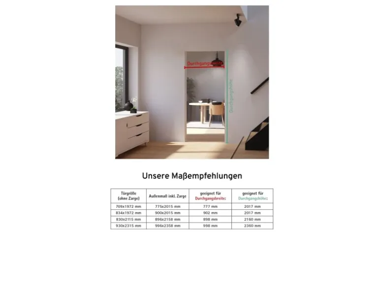 Die Zimmertür 830x2115mm ist passend für das Öffnungsmaß 898x2160mm