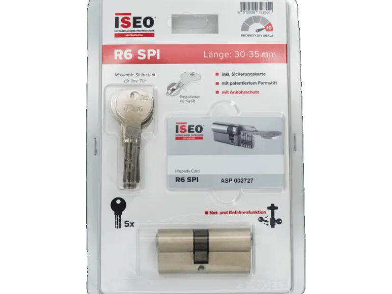 Außerdem enthält der Schlüssel einen speziellen, patentierten Formstift. Der Schließbart ist 8-fach verstellbar gemäß DIN, und ein Aufbohrschutz befindet sich im Gehäuse.