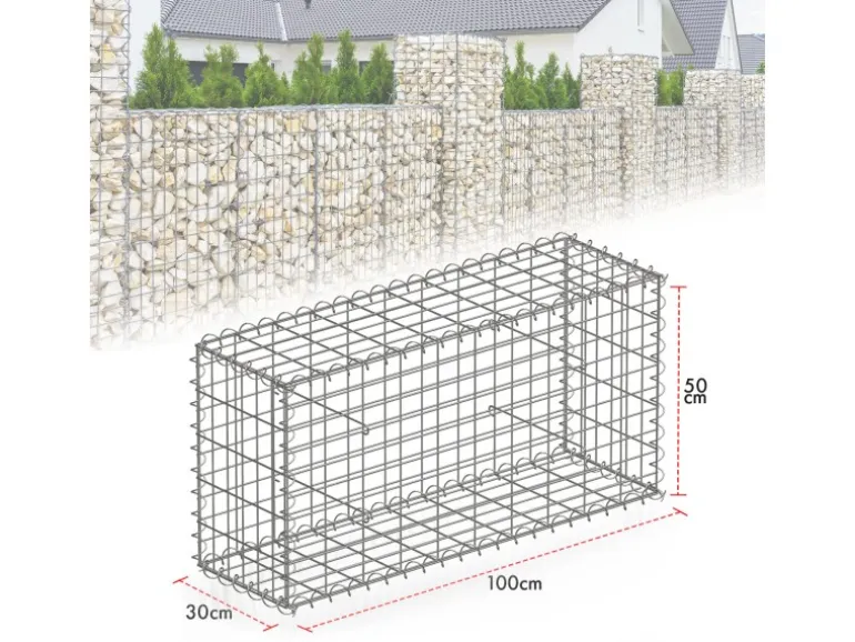 Die rechteckige Gitterstruktur mit einer Maschenweite von 5 × 10 cm ermöglicht eine einfache Befüllung mit Natursteinen, Bruchsteinen oder anderen dekorativen Materialien. Je nach Größe sind pro Korb 2 bis 9 Abstandshalterhaken im Lieferumfang enthalten, die das Aufblähen der Seitenflächen verhindern und so die dauerhafte Form sichern – auch bei starker Belastung.