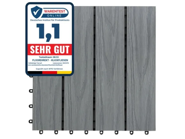 Mit unserer WPC-Klickfliesen lassen sich Gärten, Terrassen sowie Balkone kinderleicht und geschmackvoll gestalten, ohne dass beim Verlegen der einzelnen WPC-Klick-Dielen viel Zeit investiert werden muss. Das beliebte Klicksystem macht es möglich – einfach die WPC-Dielen aneinanderstecken und im Handumdrehen verwandeln Sie Ihre Terrasse oder Ihren Balkon in einen wunderschönen Außenbereich zum Wohlfühlen.