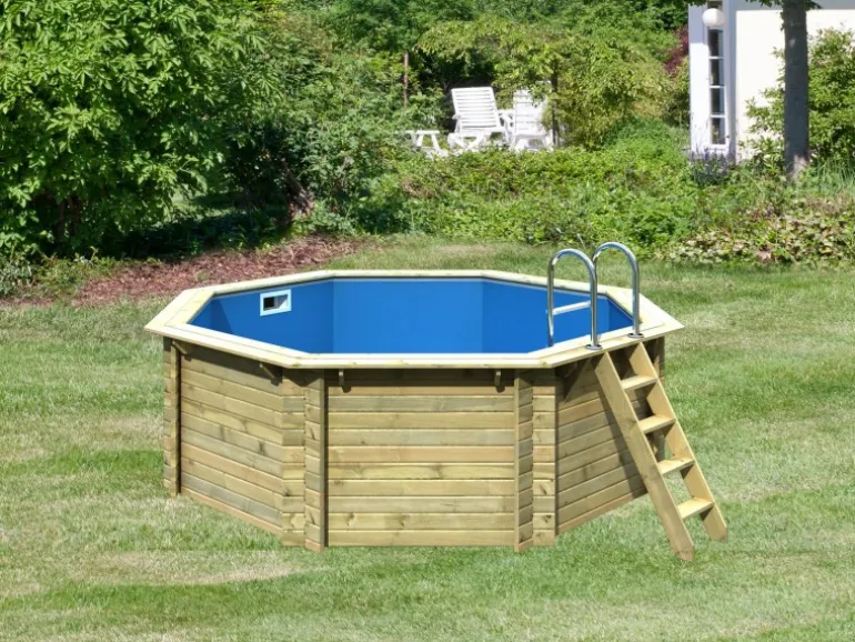 Pool aus chromfreien kesseldruckimprägniertem Rundprofilhölzern