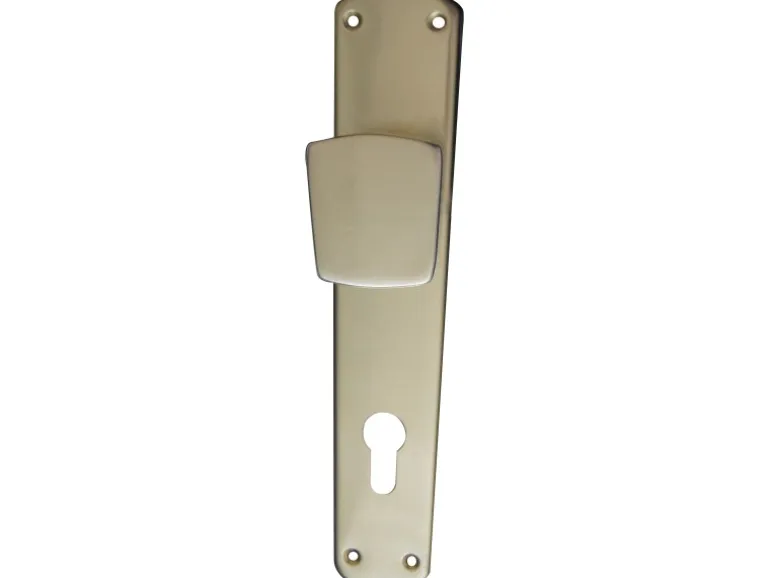 Knopflangschild in Aluminium F2 Eloxiert. Mit einer 92 mm Profilzylinderlochung. Geeignet für Haus- und Wohnungseingangstüren.