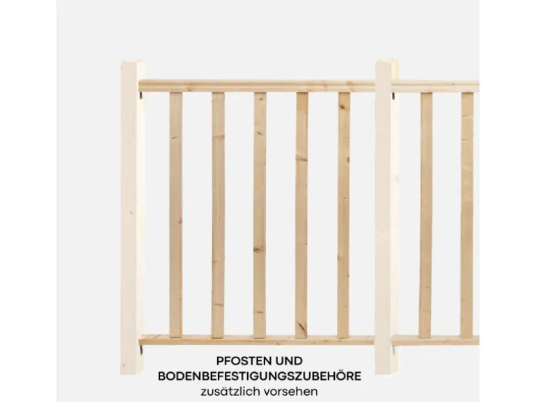 Geländer aus unbehandelter Fichte, das passend zu Ihrer Einrichtung gestrichen werden kann.