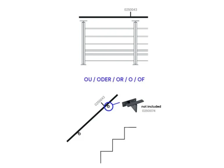 -Verstellbare Stütze (ArtNr. 0250067) für ein Geländer mit einem Treppenaufstieg,