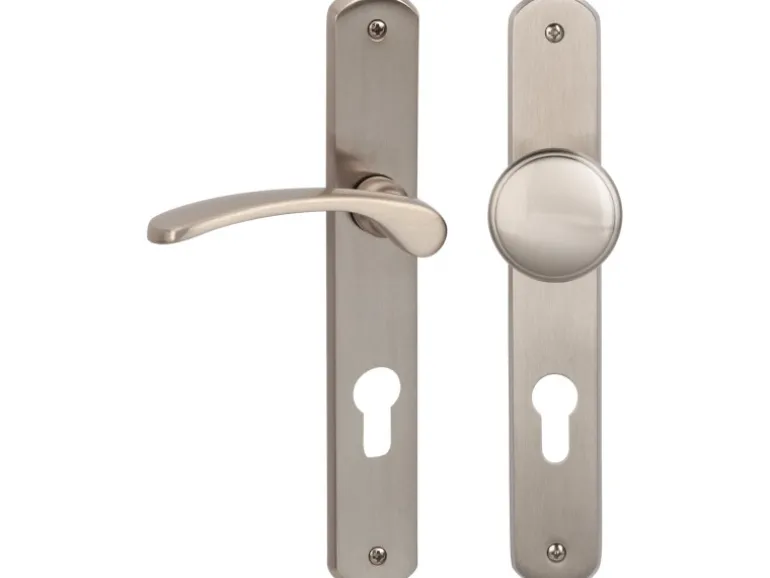 Langschildgarnitur „Amos-LS“ Eingangstüren Edelstahlfarbig satiniert DIN Links
