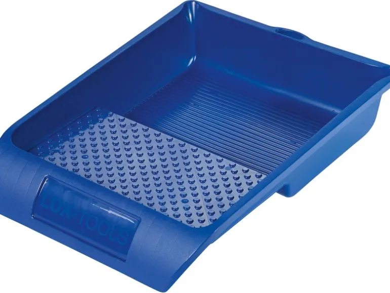 Mit der LUX-TOOLS Farbwanne können Sie gleichzeitig Farbe aufnehmen und dank integrierter Abstreifvorrichtung gleichmäßig auf der Walze verteilen. Dadurch erhalten Sie ein gleichmäßiges Streichergebnis. Das Malerzubehör liefert eine überzeugende Qualität für hohe Ansprüche und ist für häufige Anwendungen geeignet. Die 32 cm x 26 cm große Wanne besteht aus stabilem Kunststoff, der bruchsicher und lösungsmittelfest ist. Sie verfügt über eine Vertiefung für größere Mengen Farbe sowie eine Abstreiffläche mit praktischen Noppen. Dadurch wird überschüssige Farbe aufgenommen, die zurück in die Wanne fließen kann. Dank großer Aufstandsfläche steht sie kippsicher auf dem Untergrund. Die nützliche Aufhängeöse erlaubt bei Nichtgebrauch eine hängende Aufbewahrung.