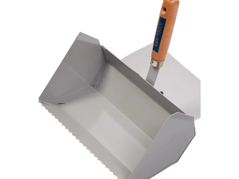 Die LUX-TOOLS Gasbetonkelle ist das ideale Werkzeug, um Steine aus Porenbeton zu verlegen. Sie dient dabei dem Auftragen und verteilen von Mörtel. Robust verarbeitet empfiehlt sich die Kelle für den Heimwerker. Der ergonomisch geformte Griff ist aus lackiertem Holz gefertigt, das sich gut greifen lässt und sicher in der Hand liegt. Das Material der Kleberkelle ist hochwertiger Carbonstahl, das sich durch Stabilität auszeichnet. Aufgrund ihres großen Fassungsvermögens können Sie auch größere Mörtelmengen gleichzeitig verarbeiten. An ihrer 240 mm breiten Vorderseite besitzt die tiefe Kelle zudem eine praktische Zahnung, die zum Glattstreichen und Durchkämmen des Mörtels dient.