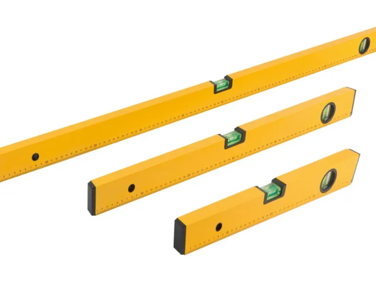 Alle drei Wasserwaagen bestehen aus stabilem Aluminium, das Langlebigkeit und Robustheit garantiert, selbst bei anspruchsvollen Arbeiten. Die gelbe Farbgestaltung sorgt für eine klare Sichtbarkeit der Wasserwaagen auf jeder Baustelle und erleichtert die Orientierung bei wenig Licht. Aluminium ist außerdem leicht, sodass du das Set problemlos transportieren und überall einsetzen kannst. Die Endkappen der Wasserwaagen aus schwarzem Kunststoff verhindern das Eindringen von Staub.