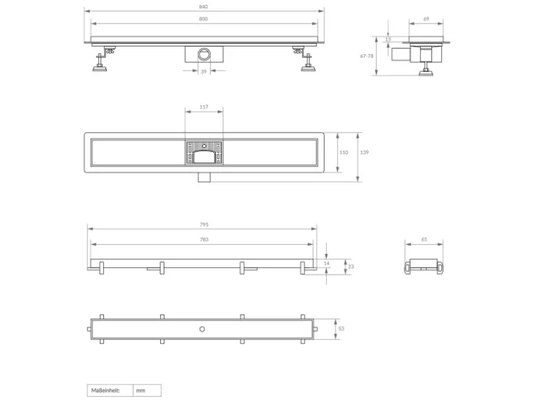 Länge Abfluss: 800 mm