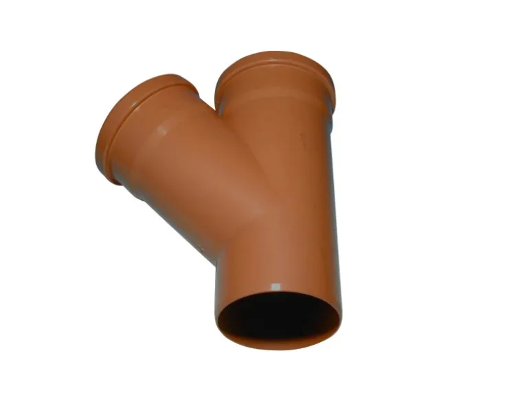 Der Kanalgrundrohr-Einfachabzweig ist zur Verzweigung von 2 Kanalgrundrohren mit DN 125 im Winkel von 45 Grad geeignet.