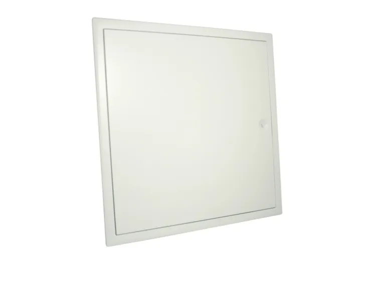 Revisionstür zum Verdecken von Leitungen oder Absperrhähnen, die jederzeit wieder zugänglich sein sollten. Die weiß beschichtete Revisionstür aus verzinktem Stahlblech bietet dank eines Mauerankers einen sicheren Halt.