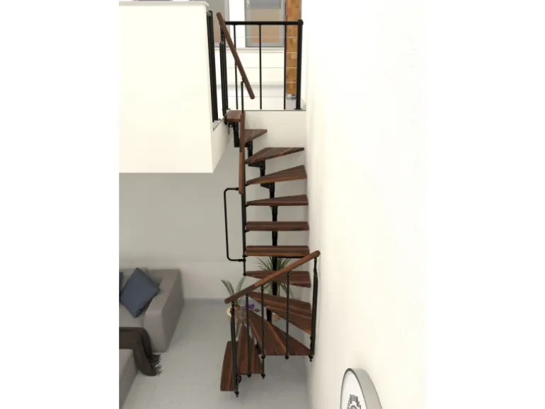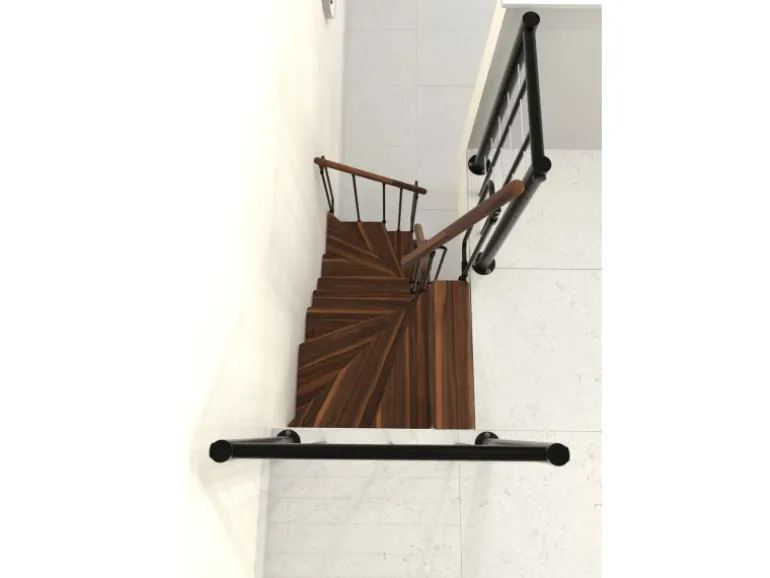 Raumspartreppe mit Massivholzstufen und Geländer mit vertikalen Stäben