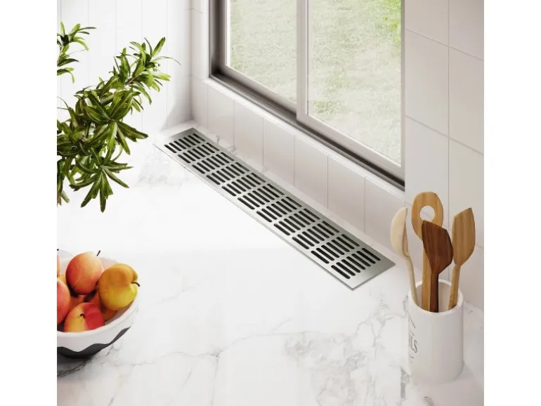 100 mm breites Lüftungsgitter – sorgt für gute Luft in größeren Räumen