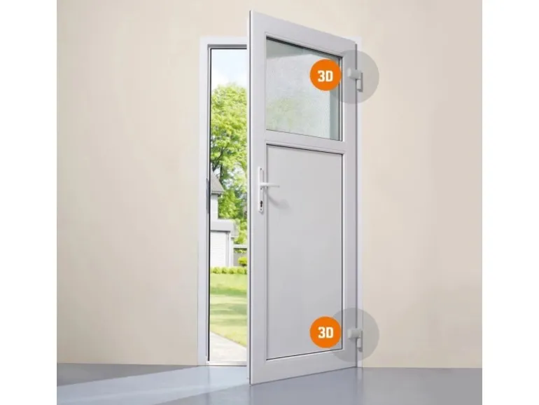 Das Türblatt und der Blendrahmen der Nebeneingangstür K 301-88 sind mit einer Stahlarmierung verstärkt und so mit einer erhöhten Stabilität vor Krafteinwirkungen geschützt. Beide sind über zwei Türbänder verbunden, die bei Bedarf dreidimensional verstellt werden können. Die Nebeneingangstür ist mit einer 1-fach Verriegelung ausgestattet.