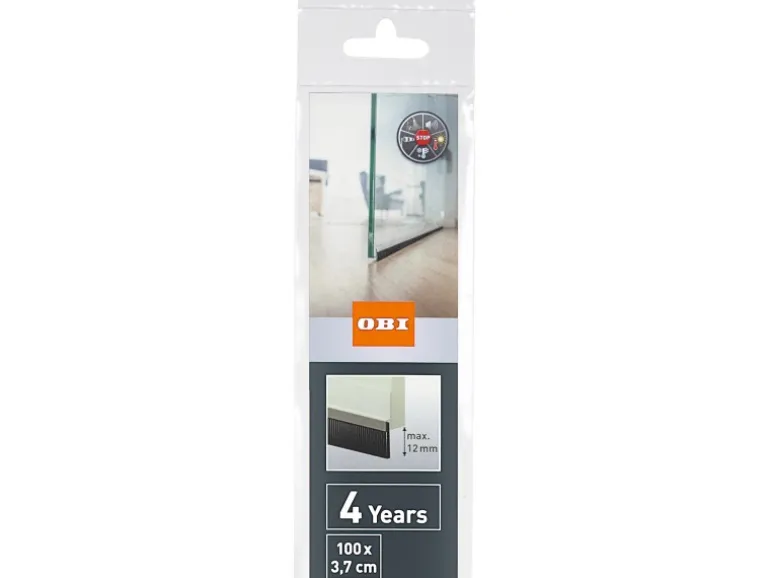 Standard Türdichtschiene für glatte Böden. Die langlebige, selbstklebende OBI Standard Türdichtschiene schützt vor Zugluft, Kälte, Staub und Lärm. Die hochwertigen Nylonborsten sichern perfekte Abdichtung.