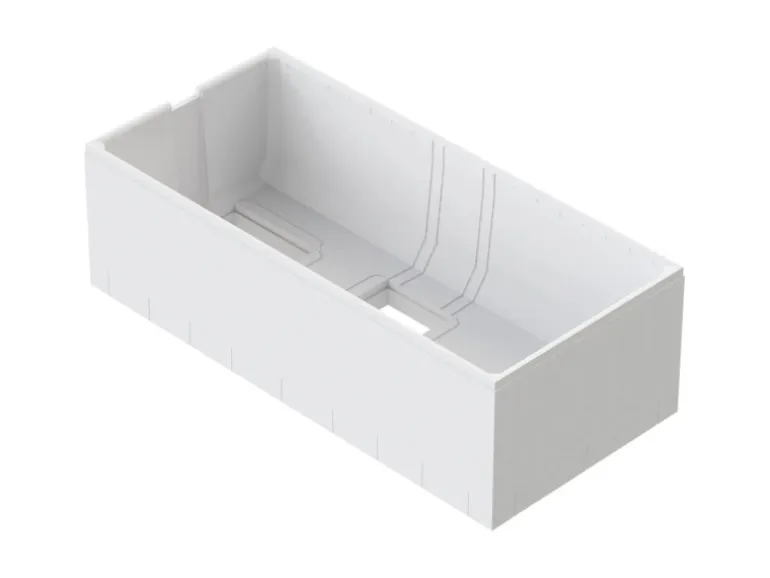 Der passende Hartschaum-Wannenträger ermöglicht eine schnelle und saubere Montage der Badewanne. Seine Oberfläche ist direkt befliesbar, was eine zügige Abwicklung der Baumaßnahme ermöglicht. Der Träger bietet eine solide Basis für eine schnelle und problemlose Verfliesung, und die Verlegung von Rohranschlüssen im und unter dem Wannenträger ist unkompliziert auszuführen. Dank der Materialeigenschaften (EPS) ist der Wannenträger leicht zu handhaben und auf der Baustelle einfach zu bearbeiten.