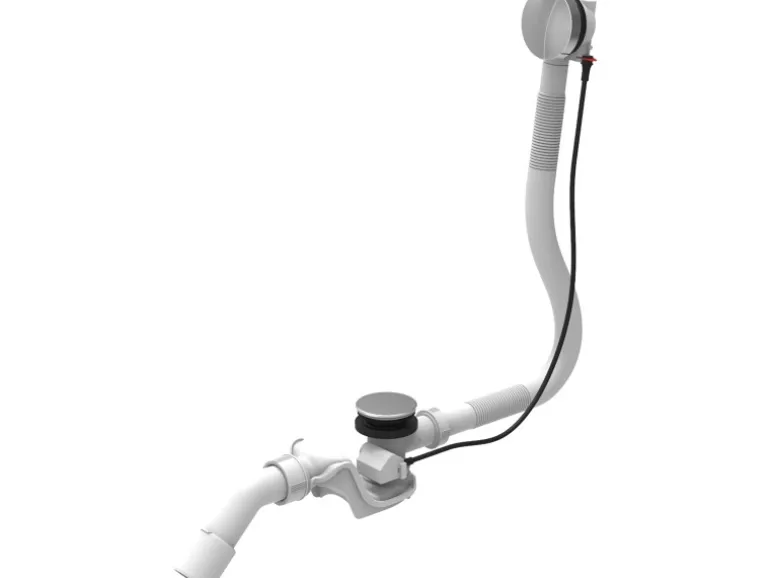 Die mitgelieferte Ab- und Überlaufgarnitur in Chrom verfügt über eine Drehexcenterbetätigung mit Überdrehschutz und entspricht den Standards der DIN EN 274.