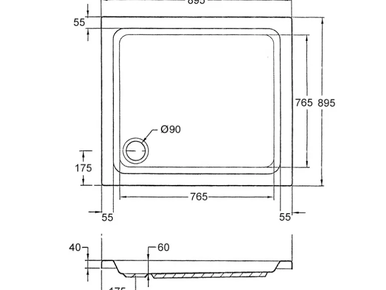 Quadratische Brausewanne 90 cm x 90 cm (LxB), clevere Lösung für Bäder mit begrenztem Raumangebot