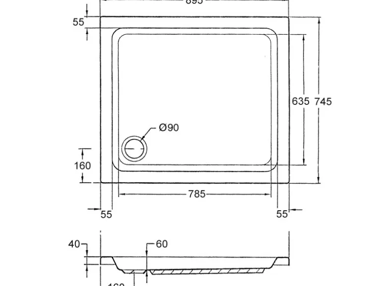 Rechteckige Duschtasse 90 cm x 75 cm (LxB), hervorragend passend für Bäder mit begrenztem Raumangebot