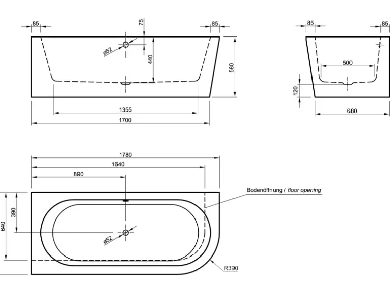 Mit einer Liegefläche von 135,5 cm und einer Füllmenge von 250 l bietet die Wanne genügend Platz für ein entspannendes Bad. Die verchromte Ab- und Überlaufgarnitur ist mittig angebracht und ermöglicht somit die beidseitige Liegeposition.