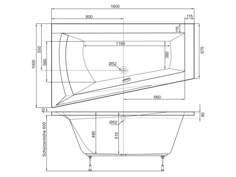 Ottofond Whirlpool Galia I Typ B 160 cm x 100 cm Weiß