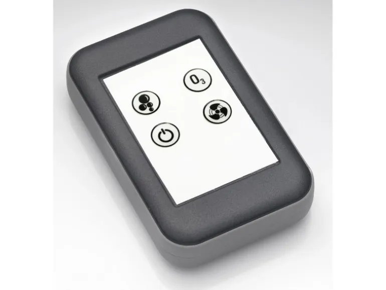 Das Airsystem verfügt über eine automatische und manuelle Nachtrocknung. Der Trockenlaufschutz verhindert den Betrieb des Membrangebläses ohne Wasser. Eine verchromte Ab- und Überlaufgarnitur ist werkseitig montiert. Die Steuerung des Whirlpools erfolgt über die beiliegende 4-Funktions-Fernbedienung.