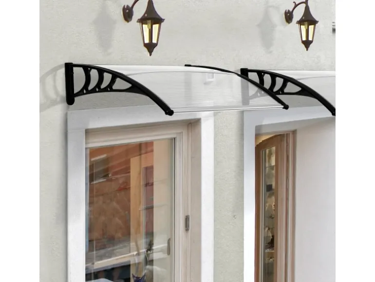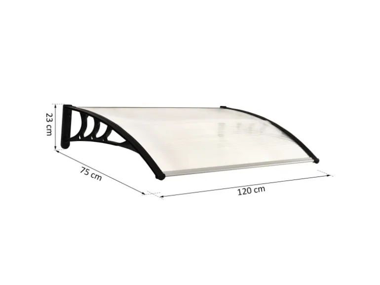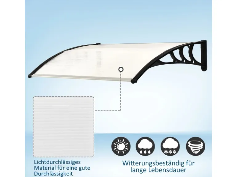 Dieses langlebige Türvordach mit transparenter Abdeckung besteht aus stoßsicheren und robusten Polycarbonatplatten inklusive Aluminium-Kantenschutzleisten. Es sorgt dafür, dass Sie den besten Schutz vor Witterung wie Regen, Schnee und UV genießen. Diese Überdachung eignet sich für jeden Eingangsbereich und ist auch als Fensterschutz einsetzbar.