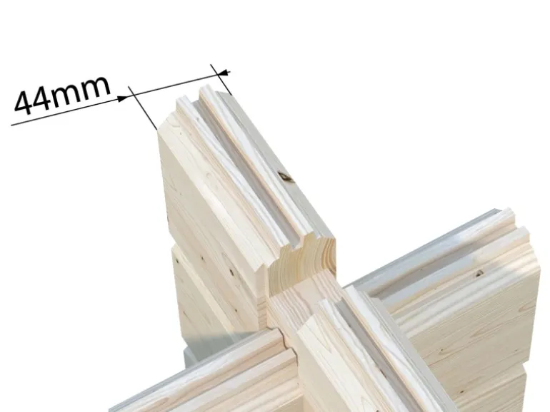Die Tür- und Fenstersprossen sind inklusive und können auf Wunsch montiert werden. Zum Bausatz gehören imprägnierte Fundamenthölzer, 19 mm Dach- und Fußbodenbretter mit Nut und Feder, Sturmleisten, sowie ein Montage-Set. Ab Werk wird das Haus mit einer farbigen Fassade im Grundfarbton RAL7012 sowie der Akzentfarbe RAL7016 versehen. Dacheindeckung ist nicht im Lieferumfang enthalten.