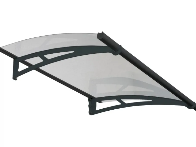 Gebogene Haustürüberdachung für einen geschützten Eingangsbereich