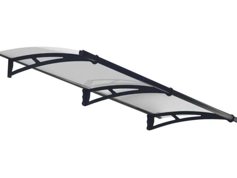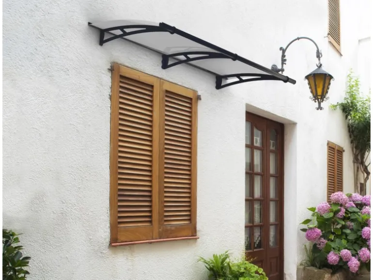 Gebogene Haustürüberdachung für einen geschützten Eingangsbereich