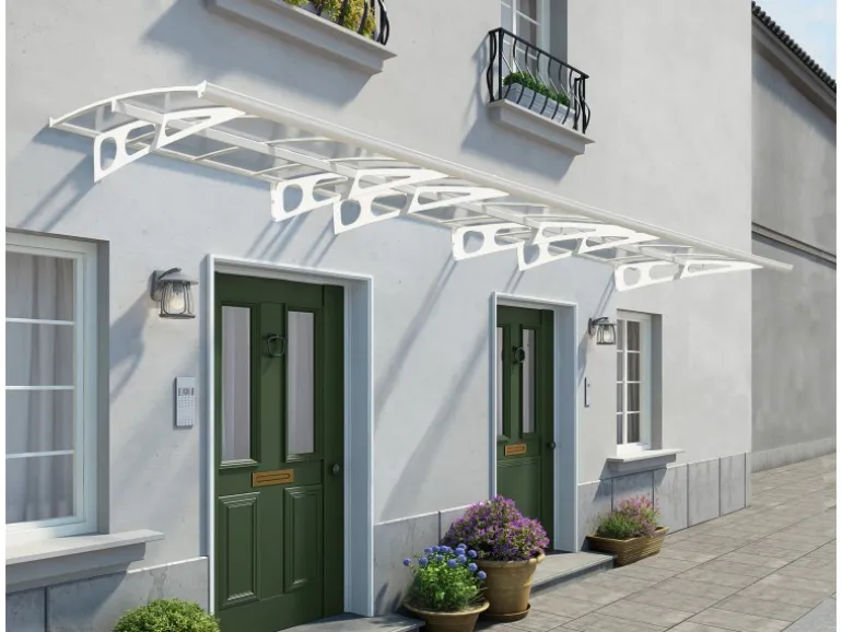 Moderne Haustürüberdachung für einen geschützten Eingangsbereich