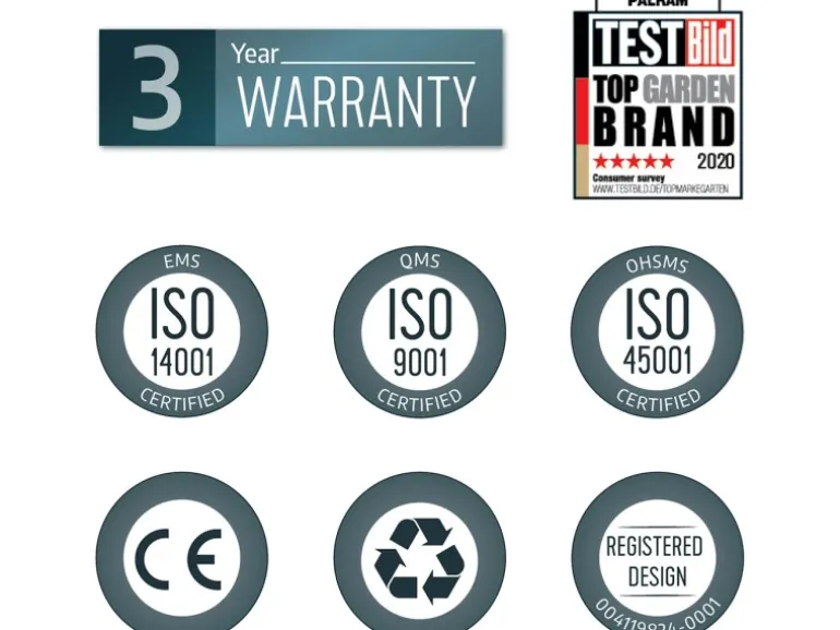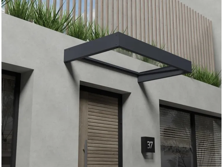 Stabile, pulverbeschichtete Aluminiumprofile und verzinkte Stahlhalterungen in dunkelgrauer Ausführung