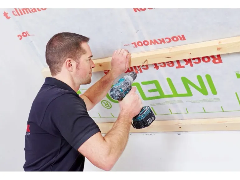 Die Steinwolle-Dämmplatte Formrock 035 ist auf Format geschnitten und passt ohne Zuschneiden genau zwischen die Latten/Profile der Unterkonstruktion. Bei der Längsverlegung der Bekleidung wird Formrock in der Breite von 450 mm verwendet, bei der Querverlegung in der Breite von 580 mm. Die hohe Formstabilität der Platte sorgt für eine gute Klemmwirkung zwischen den Latten.