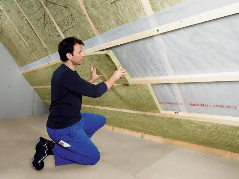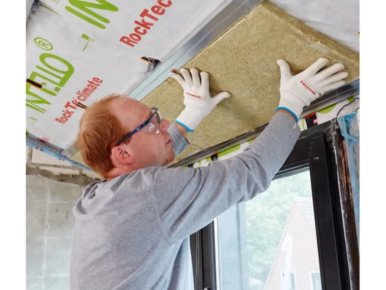 Die Steinwolle-Dämmplatte Formrock 035 ist auf Format geschnitten und passt ohne Zuschneiden genau zwischen die Latten/Profile der Unterkonstruktion. Bei der Längsverlegung der Bekleidung wird Formrock in der Breite von 450 mm verwendet, bei der Querverlegung in der Breite von 580 mm. Die hohe Formstabilität der Platte sorgt für eine gute Klemmwirkung zwischen den Latten.