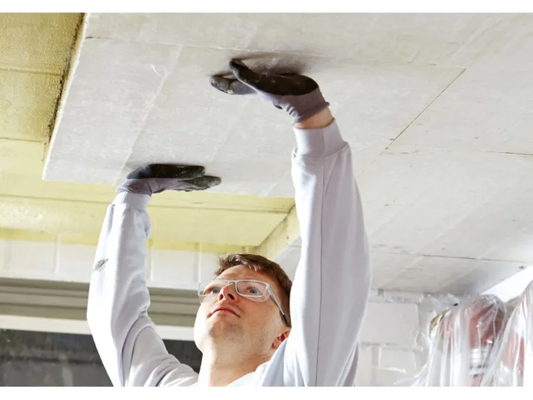 Planarock Top wird für die unterseitige Dämmung von Kellerdecken eingesetzt. Sie zeichnet sich durch eine helle Vlieskaschierung aus. Durch ihre Zweischichtcharakteristik hat Planarock Top eine druckfeste Oberfläche und bietet damit mehr Sicherheit bei der Klebemontage. Auch für die Montage an Innenwänden geeignet. Dabei sollten bauseits gesonderte Maßnahmen zum Schutz des Oberflächenvlies vor Beschädigung getroffen werden. Eine nachträgliche Beschichtung mit Farbe, Spachtel oder Putzen ist nicht zulässig. Sollte der Untergrund für eine reine Klebemontage nicht geeignet sein, kann die Planarock Top auch per Dübel (Tellerdurchmesser min. 90 mm) montiert werden. Art, Anzahl und Anordnung ist bauseits festzulegen. Hinweis: Nicht für Sichtakustik geeignet. Nicht für Anwendungen mit Anforderung an die Optik der Oberfläche hinsichtlich Ebenheit und farblicher Gleichmäßigkeit geeignet. Produktionsbedingt ist eine leicht wellige Oberfläche nicht auszuschließen.