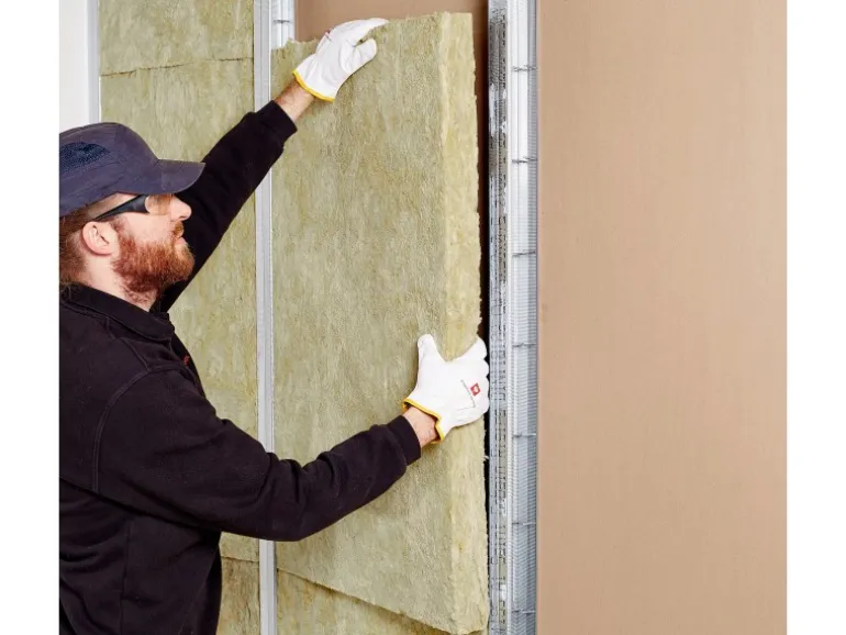 Nicht-brennbare Steinwolle-Dämmplatte für den Wärme-, Schall-, und Brandschutz von Montagewänden in Trockenbauweise. Die auf die C-Profile abgestimmten Dicken führen durch die Vollausfüllung des Hohlraums zu einer Erhöhung der Schalldämmung von 1 – 2 dB gegenüber einer Teilausfüllung. Elastische, kunstharzgebundene Steinwolle-Dämmplatte für die Wärme- und Schalldämmung von leichten Trennwänden, auch mit Brandschutzanforderungen.
