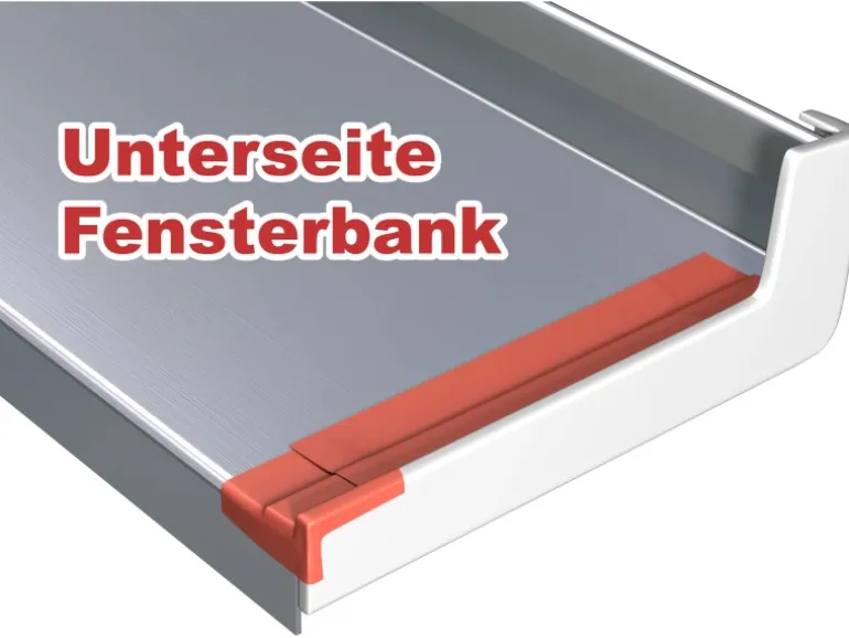 Es lässt sich je nach Bedarf zurechtschneiden und kann somit einfach auf den Übergängen der Unterseite der Aluminium-Fensterbank und den seitlichen Endkappen angebracht werden. Die Kopfdichtungen verschliessen die Übergänge zwischen Endkappen und Fensterrahmen. Sie sind ebenfalls selbstklebend.