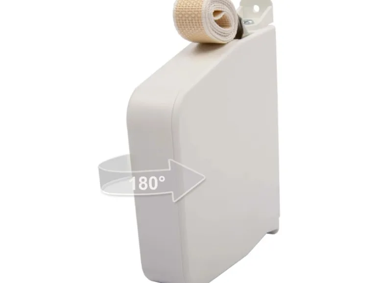 Der schwenkbare Aufschraubwickler mit weißem Kunststoffgehäuse ist ideal geeignet für Renovierungen oder Neubauten. Er ist für das Rollladensystem Maxi ausgelegt und wird Aufputz beispielsweise auf der Wand oder am Fensterrahmen montiert. Bei diesem Aufschraubwickler handelt es sich um eine geschlossene Einheit, in der ein vorgespannter Rollladengurt bereits integriert ist. Der beige Rollladengurt entspricht dem Rollladensystem Maxi und hat eine Breite von 23 mm sowie eine Länge von 5,3 m. Der Aufschraubwickler ist um 180° schwenkbar und hat einen Lochabstand von 170 mm.