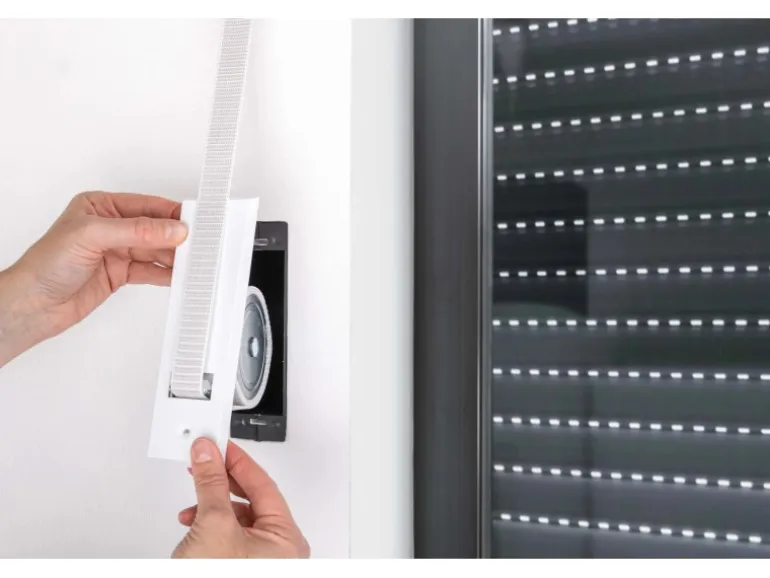 Für eine individuelle Gestaltung des Gurtwicklers, passend zu Ihrer Wohnumgebung, ist im Lieferumfang keine Abdeckplatte enthalten. Diese sind in verschiedenen Ausführungen und mit geeignetem Lochabstand separat erhältlich.